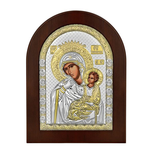 Ασημένια εικόνα Παναγία Παραμυθία με επίχρυσες λεπτομέρειες.Διάσταση 15X21