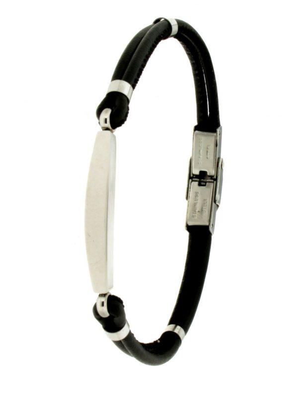 Ανδρικό βραχιόλι κατασκευασμένο από ανοξείδωτο ατσάλι και δέρμα σε μαύρο χρώμα.Διάσταση 22εκ. Με δυνατότητα μείωσης μεγέθους.