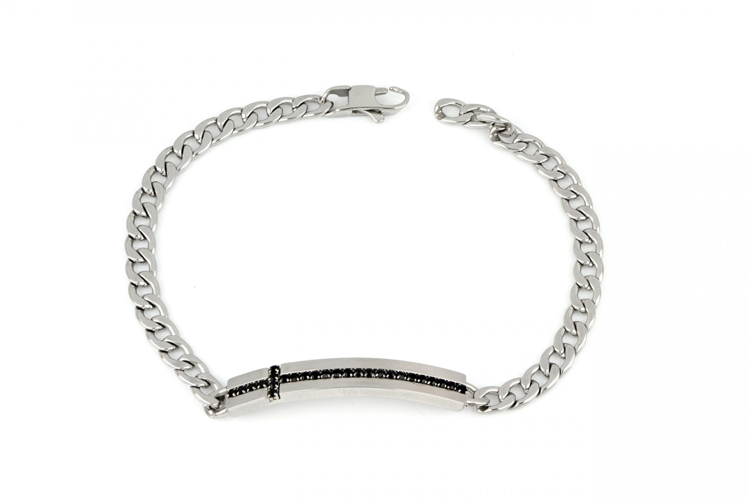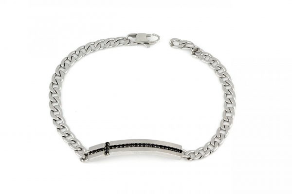Ανδρικό βραχιόλι αλυσίδα κατασκευασμένο από ανοξείδωτο ατσάλι σε ασημί χρώμα με μαύρες πέτρες.Διάσταση 21εκ.