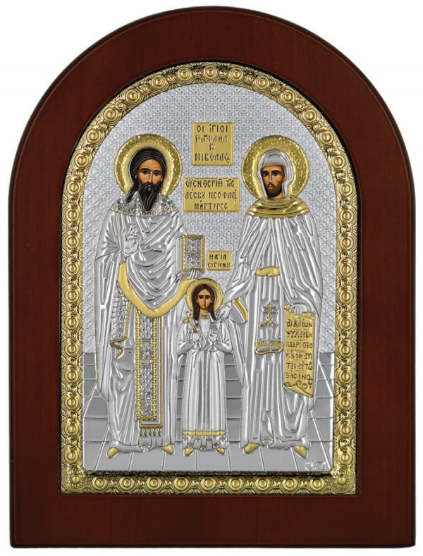 Ασημένια εικόνα Άγιος Ραφαήλ Άγιος Νικόλαος Αγία Ειρήνη με επίχρυσες λεπτομέρειες.Διάσταση 20X26