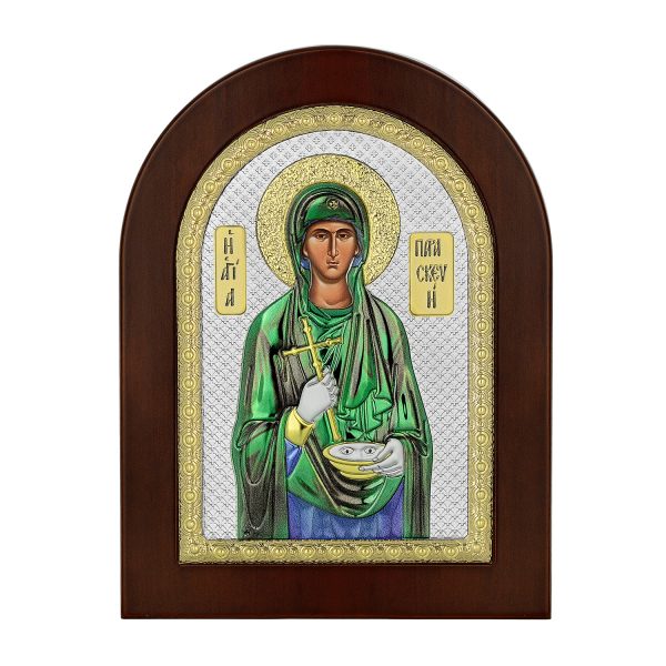 Ασημένια εικόνα η Αγία Παρασκευή με επίχρυσες λεπτομέρειες και σμάλτο.Διάσταση 15Χ21