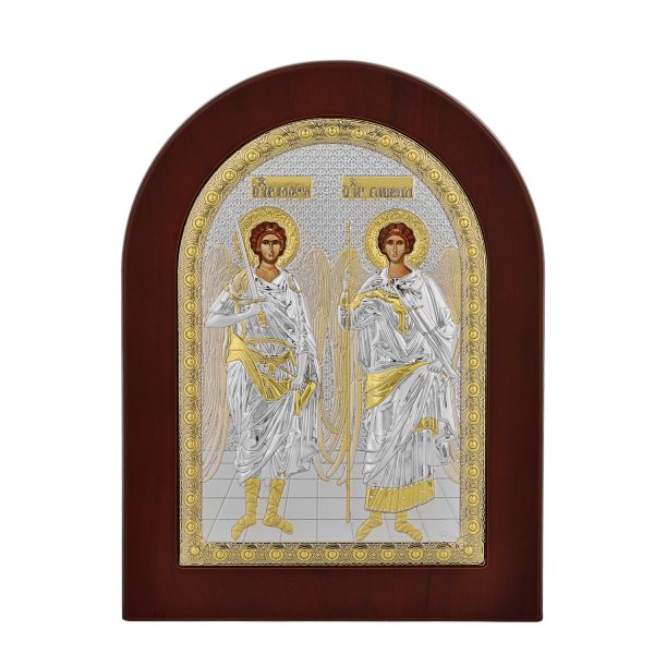 Ασημένια εικόνα οι Άγιοι Ταξιάρχες με επίχρυσες λεπτομέρειες.Διάσταση 10Χ14