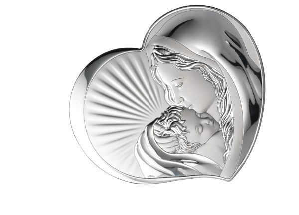 Ασημένια εικόνα Της Παναγίας με το Θείο βρέφος με ματ και γυαλιστερή επιφάνεια. Διάσταση 22,5Χ25,5