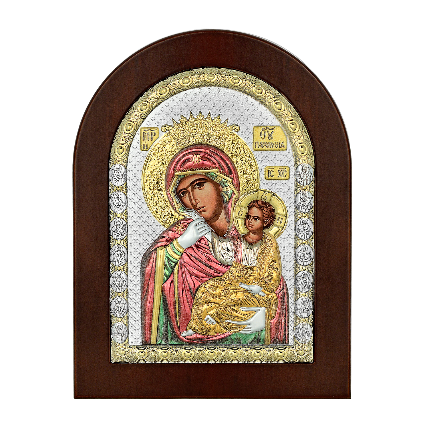 Ασημένια εικόνα Παναγία Παραμυθία με σμάλτο και επίχρυσες λεπτομέρειες.Διάσταση 15X21