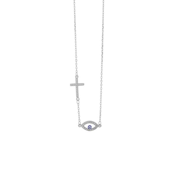 Ασημένιο κολιέ 925 ματάκι και σταυρός με πέτρες ζιργκόν,επιπλατινωμένο.Αλυσίδα 40+5εκ.    ΤΟ ΠΡΟΙΟΝ ΕΧΕΙ ΥΠΟΣΤΕΙ ΕΙΔΙΚΗ ΕΠΕΞΕΡΓΑΣΙΑ ΚΑΙ ΠΑΡΑΜΕΝΕΙ ΑΜΕΤΑΒΛΗΤΟ