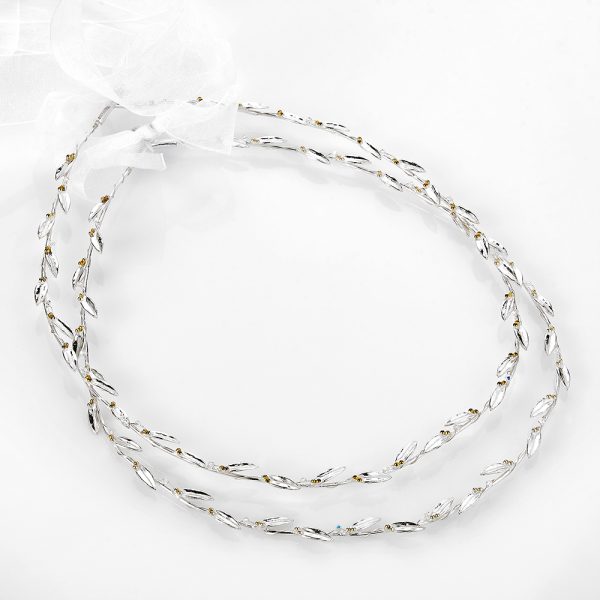 Επάργυρα χειροποίητα στέφανα γάμου βέργα με φύλλα ελιάς.