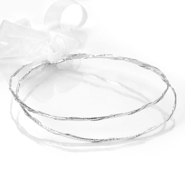 Επάργυρα χειροποίητα στέφανα γάμου σφυρίλατη βέργα με μαρτιλέ σπιράλ.