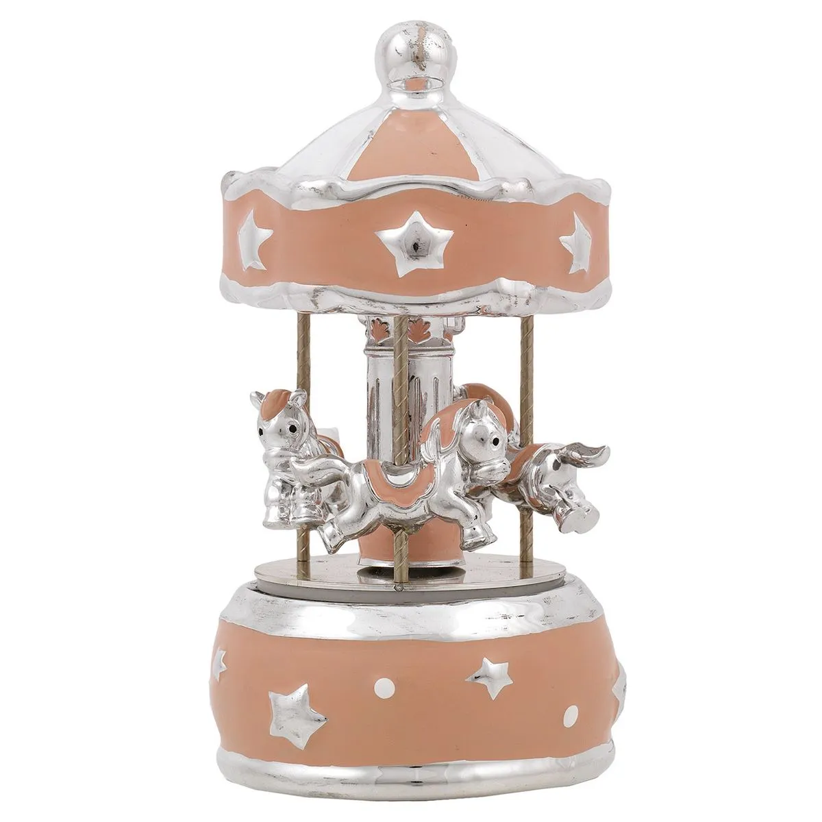 Μουσικό καρουζέλ με κίνηση και φως led απο ασήμι με σμάλτο σε ροζ απόχρωση.Υψος 17εκ.