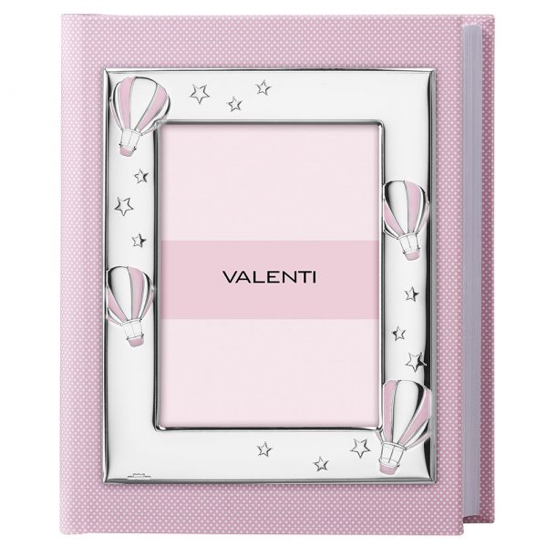 Παιδικό δερμάτινο άλμπουμ με ασημένια κορνίζα και ριζόχαρτο σε ροζ απόχρωση, αποτελείται από 30 φύλλα.Διάσταση 20Χ25