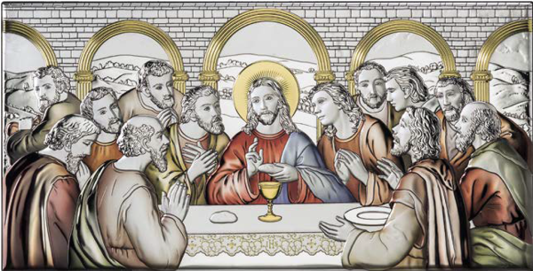 Aσημένια εικόνα Μυστικός Δείπνος με επίχρυσες λεπτομέρειες και σμάλτο.Διάσταση 11Χ22