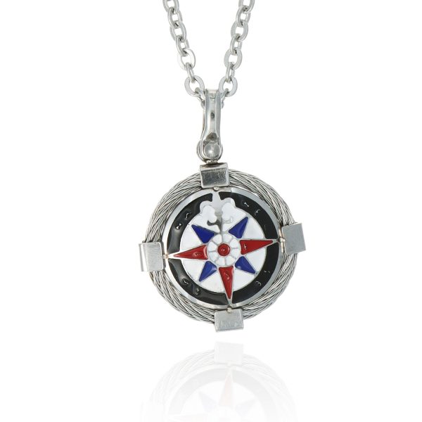 Ανδρική πυξίδα  με αλυσίδα απο ανοξείδωτο ατσάλι σε ασημί χρώμα με σμάλτο.Αλυσίδα 45+5εκ.