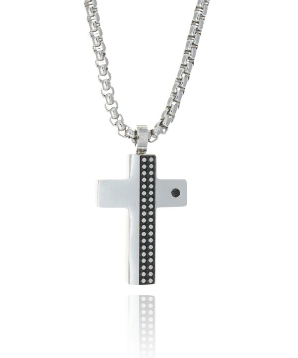 Ανδρικός σταυρός με αλυσίδα απο ανοξείδωτο ατσάλι σε ασημί,μαύρο χρώμα.Αλυσίδα 45+5εκ.