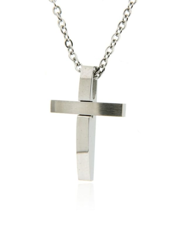 Ανδρικός σταυρός με αλυσίδα απο ανοξείδωτο ατσάλι σε ασημί,χρώμα.Αλυσίδα 45+5εκ.