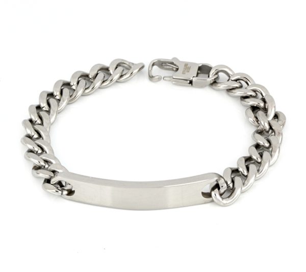 Ανδρικό βραχιόλι αλυσίδα με ταυτότητα κατασκευασμένο από ανοξείδωτο ατσάλι σε ασημί χρώμα.Διάσταση 20εκ.