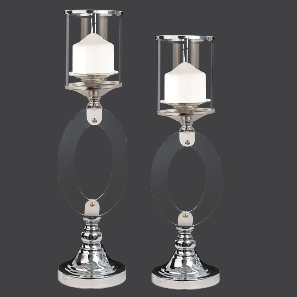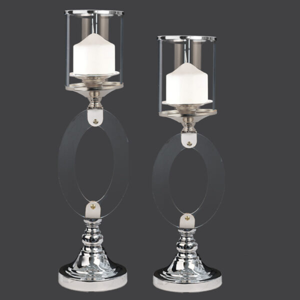 Σετ μεταλλικά κηροπήγια γάμου σε ασημί απόχρωση.