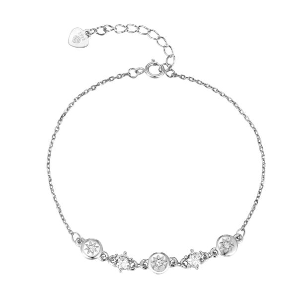 Γυναικείο ασημένιο βραχιόλι 925 τρεις κύκλοι με πέτρες ζιργκόν και δύο μονόπετρα,επιπλατινωμένο.