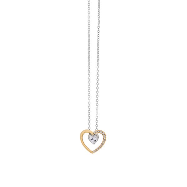 Ασημένιο κολιέ 925 δίχρωμο με επίχρυση καρδιά και πέτρες ζιργκόν,επιπλατινωμένο.Αλυσίδα 40+5εκ.  ΤΟ ΠΡΟΙΟΝ ΕΧΕΙ ΥΠΟΣΤΕΙ ΕΙΔΙΚΗ ΕΠΕΞΕΡΓΑΣΙΑ ΚΑΙ ΠΑΡΑΜΕΝΕΙ ΑΜΕΤΑΒΛΗΤΟ