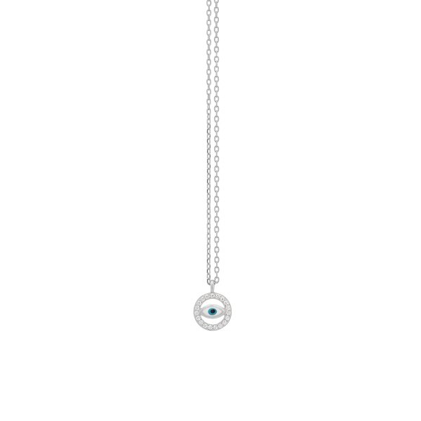 Ασημένιο κολιέ 925 ματάκι σε κύκλο με πέτρες ζιργκόν,επιπλατινωμένο.Αλυσίδα 40+5εκ.  ΠΡΟΙΟΝ ΕΧΕΙ ΥΠΟΣΤΕΙ ΕΙΔΙΚΗ ΕΠΕΞΕΡΓΑΣΙΑ ΚΑΙ ΠΑΡΑΜΕΝΕΙ ΑΜΕΤΑΒΛΗΤΟ