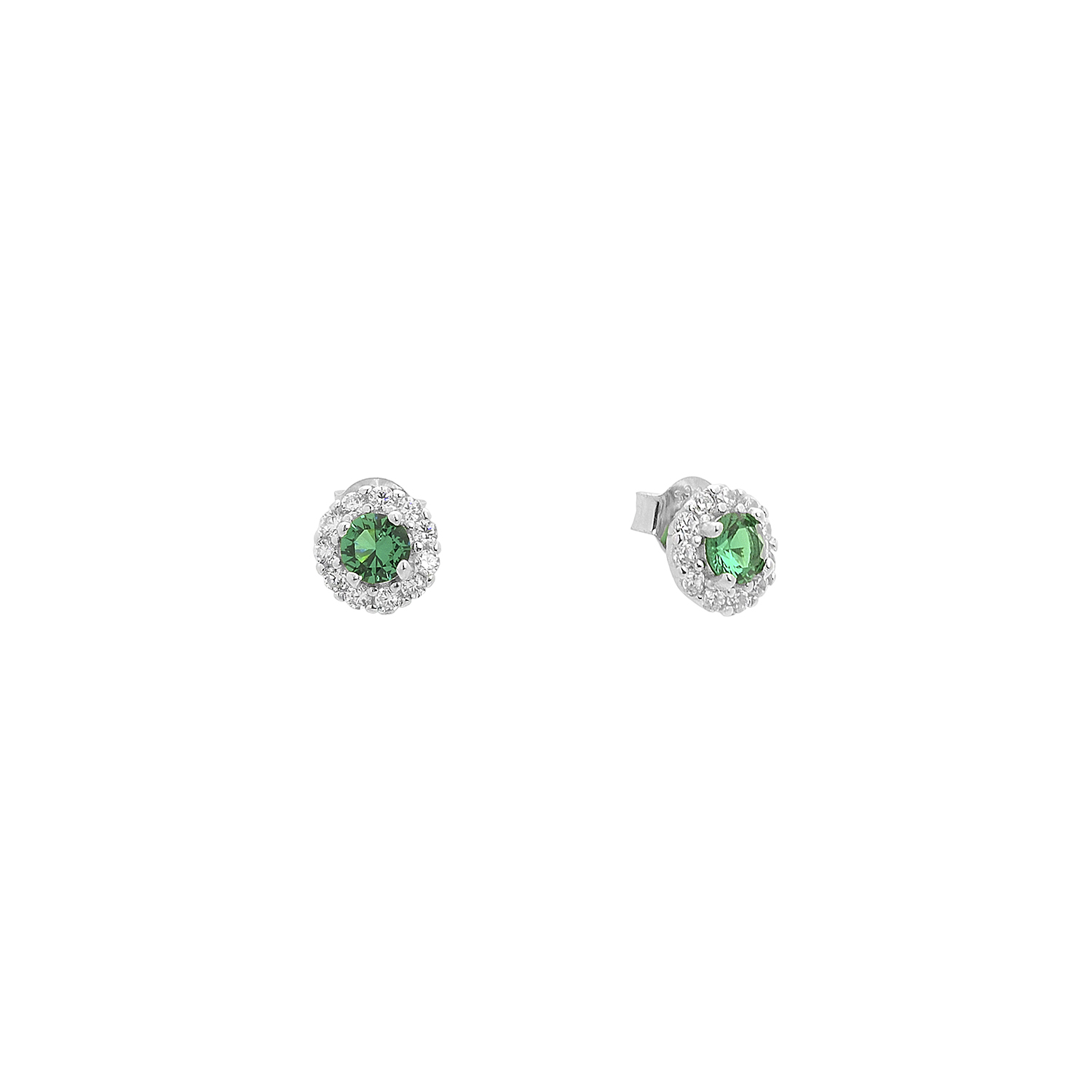 Ασημένιο σκουλαρίκι 925 ροζέτα με σμαραγδι και λευκές  πέτρες ζιργκόν,επιπλατινωμένο.  ΤΟ ΠΡΟΙΟΝ ΕΧΕΙ ΥΠΟΣΤΕΙ ΕΙΔΙΚΗ ΕΠΕΞΕΡΓΑΣΙΑ ΚΑΙ ΠΑΡΑΜΕΝΕΙ ΑΜΕΤΑΒΛΗΤΟ