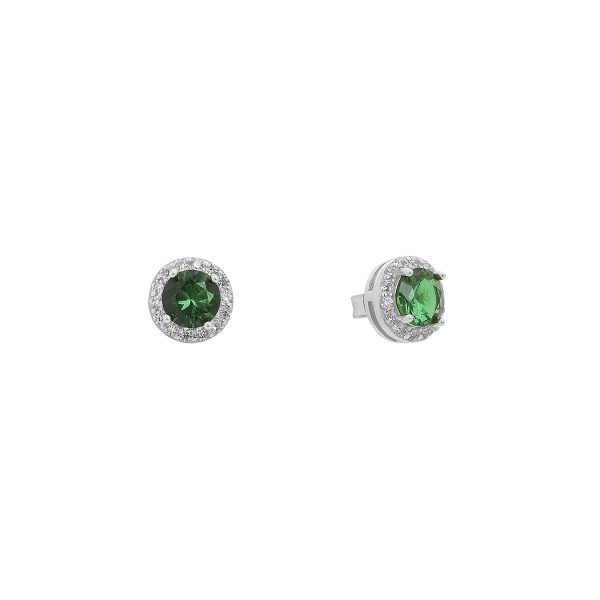 Ασημένιο σκουλαρίκι 925 ροζέτα στρογγυλή με σμαραγδί και λευκές πέτρες ζιργκόν,επιπλατινωμένο.  ΤΟ ΠΡΟΙΟΝ ΕΧΕΙ ΥΠΟΣΤΕΙ ΕΙΔΙΚΗ ΕΠΕΞΕΡΓΑΣΙΑ ΚΑΙ ΠΑΡΑΜΕΝΕΙ ΑΜΕΤΑΒΛΗΤΟ
